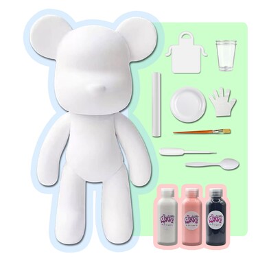 - 🐻COLOR PALETTE: This kit includes a total of 3 acrylic paints bottles 2 oz / 60 ml each, with the colors: White, Light-Pink, Black. 🐻COMPLETE KIT: Everything you need is included, one bear figure 9 inch / 23 cm, acrylic paints, apron, clear cups, plate, gloves, paintbrush, pipette, spoon and table sheet. Each bear has its own unique signature neckless, become part of our family! 🐻FLUID ACRYLIC POURING ART: A creative and fun activity for everyone: toddlers, boys, girls, teens and adults, full of your creativity, your heart, and your love. 🐻CHOOSE YOUR FAVORITE: Available in different sizes and colors palette. Let your creativity flow and get creative with colors, techniques and effects to make your own drip bear unique and beautiful, collect them all. 🐻FUN GROUP ACTIVITY: The art of making fun memories, share the happiness and creativity with people! friends, family and colleagues. Interactive Social fun activity, inspire, entertain and engage, groups, classes, parties and team building. 🐻GREAT GIFT IDEA: The perfect present for birthdays, Christmas, Baby shower, Teachers gifts, parties, after school fun, summer camps, holidays or just because! Customizable handmade giveaway. 🐻SAFE MATERIAL: High quality vibrant colors, rich pigments, signature acrylic color paints, eco-friendly, non-toxic material and emits no foul odors.