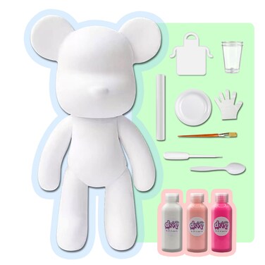 - 🐻COLOR PALETTE: This kit includes a total of 3 acrylic paints bottles 2 oz / 60 ml each, with the colors: White, Light-Pink, Fluorescent-Pink. 🐻COMPLETE KIT: Everything you need is included, one bear figure 9 inch / 23 cm, acrylic paints, apron, clear cups, plate, gloves, paintbrush, pipette, spoon and table sheet. Each bear has its own unique signature neckless, become part of our family! 🐻FLUID ACRYLIC POURING ART: A creative and fun activity for everyone: toddlers, boys, girls, teens and adults, full of your creativity, your heart, and your love. 🐻CHOOSE YOUR FAVORITE: Available in different sizes and colors palette. Let your creativity flow and get creative with colors, techniques and effects to make your own drip bear unique and beautiful, collect them all. 🐻FUN GROUP ACTIVITY: The art of making fun memories, share the happiness and creativity with people! friends, family and colleagues. Interactive Social fun activity, inspire, entertain and engage, groups, classes, parties and team building. 🐻GREAT GIFT IDEA: The perfect present for birthdays, Christmas, Baby shower, Teachers gifts, parties, after school fun, summer camps, holidays or just because! Customizable handmade giveaway. 🐻SAFE MATERIAL: High quality vibrant colors, rich pigments, signature acrylic color paints, eco-friendly, non-toxic material and emits no foul odors.