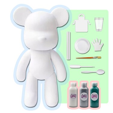 - 🐻COLOR PALETTE: This kit includes a total of 3 acrylic paints bottles 2 oz / 60 ml each, with the colors: White, Silver, Blue-Green. 🐻COMPLETE KIT: Everything you need is included, one bear figure 9 inch / 23 cm, acrylic paints, apron, clear cups, plate, gloves, paintbrush, pipette, spoon and table sheet. Each bear has its own unique signature neckless, become part of our family! 🐻FLUID ACRYLIC POURING ART: A creative and fun activity for everyone: toddlers, boys, girls, teens and adults, full of your creativity, your heart, and your love. 🐻CHOOSE YOUR FAVORITE: Available in different sizes and colors palette. Let your creativity flow and get creative with colors, techniques and effects to make your own drip bear unique and beautiful, collect them all. 🐻FUN GROUP ACTIVITY: The art of making fun memories, share the happiness and creativity with people! friends, family and colleagues. Interactive Social fun activity, inspire, entertain and engage, groups, classes, parties and team building. 🐻GREAT GIFT IDEA: The perfect present for birthdays, Christmas, Baby shower, Teachers gifts, parties, after school fun, summer camps, holidays or just because! Customizable handmade giveaway. 🐻SAFE MATERIAL: High quality vibrant colors, rich pigments, signature acrylic color paints, eco-friendly, non-toxic material and emits no foul odors.