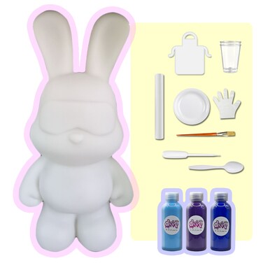- 🐰COLORS INCLUDED: This kit includes a total of 3 acrylic paints bottles 2 oz / 60 ml with each a different color. 🐰COMPLETE SET: Everything you need is included, one money saving cool-bunny figure 9 inch / 23 cm, acrylic paints, apron, clear cups, plate, gloves, paintbrush, pipette, spoon and table sheet. Each figurine has its own unique signature neckless, become part of our family! 🐰CHOOSE YOUR FAVORITE: Different figurines, sizes and colors palette available. "BEAR" 18, 23, 33 and 53cm,"COOL BEAR" 23, 32 and 53cm, "MONEY SAVER BEAR" 23, 33 and 53cm, "BUNNY" 23, 33 and 53cm, "COOL BUNNY" 23, 33 and 53cm, "MONEY SAVER BUNNY" 23, 33 and 53cm. Collect them all! 🐰FUN GROUP ACTIVITY: The art of making fun memories, share the happiness and creativity with people! friends, family and colleagues. Interactive Social fun activity, inspire, entertain and engage, groups, classes, parties and team building. 🐰FLUID ACRYLIC FLOW ART: A creative and fun activity for everyone: toddlers, boys, girls, teens and adults, full of your creativity, your heart, and your love. 🐰GREAT GIFT IDEA: A creative and fun activity for everyone. The perfect present for birthdays, Christmas, Baby shower, Teachers gifts, parties, after school fun, summer camps, holidays or just because! Customizable handmade giveaway. 🐰SAFE MATERIAL: High quality vibrant colors, rich pigments, signature acrylic color paints, eco-friendly, non-toxic material and emits no foul odors.