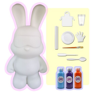 - 🐰COLORS INCLUDED: This kit includes a total of 3 acrylic paints bottles 2 oz / 60 ml with each a different color. 🐰COMPLETE SET: Everything you need is included, one money saving cool-bunny figure 9 inch / 23 cm, acrylic paints, apron, clear cups, plate, gloves, paintbrush, pipette, spoon and table sheet. Each figurine has its own unique signature neckless, become part of our family! 🐰CHOOSE YOUR FAVORITE: Different figurines, sizes and colors palette available. "BEAR" 18, 23, 33 and 53cm,"COOL BEAR" 23, 32 and 53cm, "MONEY SAVER BEAR" 23, 33 and 53cm, "BUNNY" 23, 33 and 53cm, "COOL BUNNY" 23, 33 and 53cm, "MONEY SAVER BUNNY" 23, 33 and 53cm. Collect them all! 🐰FUN GROUP ACTIVITY: The art of making fun memories, share the happiness and creativity with people! friends, family and colleagues. Interactive Social fun activity, inspire, entertain and engage, groups, classes, parties and team building. 🐰FLUID ACRYLIC FLOW ART: A creative and fun activity for everyone: toddlers, boys, girls, teens and adults, full of your creativity, your heart, and your love. 🐰GREAT GIFT IDEA: A creative and fun activity for everyone. The perfect present for birthdays, Christmas, Baby shower, Teachers gifts, parties, after school fun, summer camps, holidays or just because! Customizable handmade giveaway. 🐰SAFE MATERIAL: High quality vibrant colors, rich pigments, signature acrylic color paints, eco-friendly, non-toxic material and emits no foul odors.