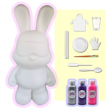 - 🐰COLORS INCLUDED: This kit includes a total of 3 acrylic paints bottles 2 oz / 60 ml with each a different color. 🐰COMPLETE SET: Everything you need is included, one money saving cool-bunny figure 9 inch / 23 cm, acrylic paints, apron, clear cups, plate, gloves, paintbrush, pipette, spoon and table sheet. Each figurine has its own unique signature neckless, become part of our family! 🐰CHOOSE YOUR FAVORITE: Different figurines, sizes and colors palette available. "BEAR" 18, 23, 33 and 53cm,"COOL BEAR" 23, 32 and 53cm, "MONEY SAVER BEAR" 23, 33 and 53cm, "BUNNY" 23, 33 and 53cm, "COOL BUNNY" 23, 33 and 53cm, "MONEY SAVER BUNNY" 23, 33 and 53cm. Collect them all! 🐰FUN GROUP ACTIVITY: The art of making fun memories, share the happiness and creativity with people! friends, family and colleagues. Interactive Social fun activity, inspire, entertain and engage, groups, classes, parties and team building. 🐰FLUID ACRYLIC FLOW ART: A creative and fun activity for everyone: toddlers, boys, girls, teens and adults, full of your creativity, your heart, and your love. 🐰GREAT GIFT IDEA: A creative and fun activity for everyone. The perfect present for birthdays, Christmas, Baby shower, Teachers gifts, parties, after school fun, summer camps, holidays or just because! Customizable handmade giveaway. 🐰SAFE MATERIAL: High quality vibrant colors, rich pigments, signature acrylic color paints, eco-friendly, non-toxic material and emits no foul odors.