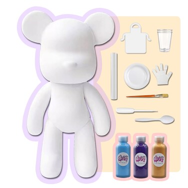 - 🐻COLOR PALETTE: This kit includes a total of 3 different colors acrylic paint bottles 2 oz / 60 ml each. 🐻COMPLETE KIT: Everything you need is included, one bear figure 7 inch / 18 cm, acrylic paints, apron, clear cups, plate, gloves, paintbrush, pipette, spoon and table sheet. Each bear has its own unique signature neckless, become part of the dubai drip art family! 🐻AVAILABLE IN DIFFERENT FIGURES and SIZES: "BEAR" 18, 23, 33 and 53cm,"COOL BEAR" 23, 32 and 53cm, "MONEY SAVER BEAR" 23, 33 and 53cm, "COOL BUNNY" 23, 33 and 53cm, "MONEY SAVER BUNNY" 23, 33 and 53cm. Collect them all! 🐻ACRYLIC FLOW POURING ART: A creative and fun activity for everyone: toddlers, boys, girls, teens and adults, full of your creativity, your heart, and your love. 🐻CHOOSE YOUR FAVORITE: Available in different bearbrick figurines and colors palettes. Let your creativity flow and get creative with colors, techniques and effects to make your own drip bear unique and beautiful. 🐻FUN GROUP ACTIVITY: The art of making fun memories, share the happiness and creativity with people! friends, family and colleagues. Interactive Social fun activity, inspire, entertain and engage, groups, classes, parties and team building. 🐻GREAT GIFT IDEA: The perfect present for birthdays, Christmas, Baby shower, Teachers gifts, parties, after school fun, summer camps, holidays or just because! Customizable handmade giveaway. 🐻SAFE MATERIAL: High quality vibrant colors, rich pigments, signature acrylic color paints, eco-friendly, non-toxic material and emits no foul odors.