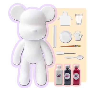 - 🐻COLOR PALETTE: This kit includes a total of 3 different colors acrylic paint bottles 2 oz / 60 ml each. 🐻COMPLETE KIT: Everything you need is included, one bear figure 7 inch / 18 cm, acrylic paints, apron, clear cups, plate, gloves, paintbrush, pipette, spoon and table sheet. Each bear has its own unique signature neckless, become part of the dubai drip art family! 🐻AVAILABLE IN DIFFERENT FIGURES and SIZES: "BEAR" 18, 23, 33 and 53cm,"COOL BEAR" 23, 32 and 53cm, "MONEY SAVER BEAR" 23, 33 and 53cm, "COOL BUNNY" 23, 33 and 53cm, "MONEY SAVER BUNNY" 23, 33 and 53cm. Collect them all! 🐻ACRYLIC FLOW POURING ART: A creative and fun activity for everyone: toddlers, boys, girls, teens and adults, full of your creativity, your heart, and your love. 🐻CHOOSE YOUR FAVORITE: Available in different bearbrick figurines and colors palettes. Let your creativity flow and get creative with colors, techniques and effects to make your own drip bear unique and beautiful. 🐻FUN GROUP ACTIVITY: The art of making fun memories, share the happiness and creativity with people! friends, family and colleagues. Interactive Social fun activity, inspire, entertain and engage, groups, classes, parties and team building. 🐻GREAT GIFT IDEA: The perfect present for birthdays, Christmas, Baby shower, Teachers gifts, parties, after school fun, summer camps, holidays or just because! Customizable handmade giveaway. 🐻SAFE MATERIAL: High quality vibrant colors, rich pigments, signature acrylic color paints, eco-friendly, non-toxic material and emits no foul odors.
