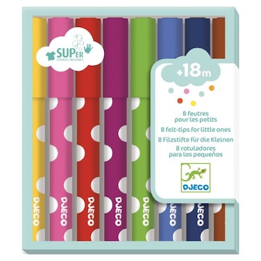 Designed for very young children, these 8 bright colourful pens have very sturdy tips and are super washable.