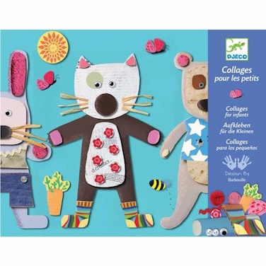 - <p>Large corrugated cardboard pieces and fun accessories for tiny hands to create four simple pictures full of character. Very thick cardboard stick on pieces for easy grip. Pieces separated into small envelopes, so as not to get mixed up.<p>Contains 4 pictures to complete, 4 envelopes containing many pieces to stick on,1 glue stick and colour instruction book.<p>Suitable From 3 to 6 years<p>