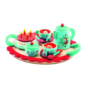 Your child will love this charming solid wood tea set.