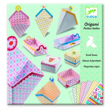 Create 3 different types of small origami boxes from a selection of pretty paper sheets and add the stickers for a decorative touch.