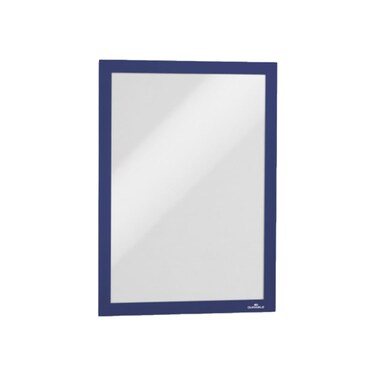 Self-adhesive A4 information sign with folding magnetic front panel. DURAFRAME is the professional and convenient way to display literature. Simply peel off the protective paper and apply the self adhesive back to any smooth, solid surface such as windows, filing cabinets and doors. DURAFRAME can easily be repositioned from surfaces such as glass without leaving a residue. A4. Self-adhesive. Magnetic front closure. 2/pack. Blue