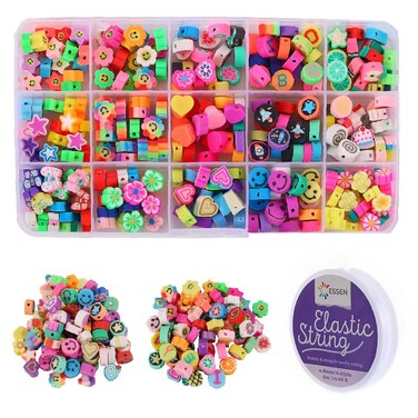 • ✅ PACKAGE INCLUDES: 300pcs handmade polymer clay beads in 15 different shapes with 20pcs per shape and 1 elastic string. The beads are stored in a 6 x 4 box. Enough beads to meet all your DIY needs for jewelry making.