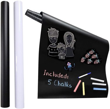 Generic 2Pcs Xl Chalkboard Contact Paper (Black And White) 45cmw X 200cml Extra Large Chalk Board Paper Roll Peel & Stick, Free Chalk Pen