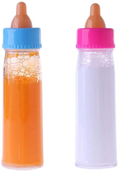 • Set includes 2 baby doll magic bottles: magic disappearing milk bottle and magic disappearing juice bottle.
