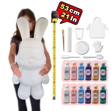 - COLORS INCLUDED: This kit includes a total of 12 acrylic paints bottles 2 oz / 60 ml with 6 different colors. COMPLETE SET: Everything you need is included, one XXL Cool BUNNY figure 53 cm, acrylic paints, apron, clear cups, plate, gloves, paintbrush, pipette, spoon and table sheet. Each figurine has its own unique signature neckless, become part of our family! CHOOSE YOUR FAVORITE: Different figurines, sizes and colors palette available. "BEAR" 18, 23, 33 and 53cm,"COOL BEAR" 23, 32 and 53cm, "MONEY SAVER BEAR" 23, 33 and 53cm, "BUNNY" 23, 33 and 53cm, "COOL BUNNY" 23, 33 and 53cm, "MONEY SAVER BUNNY" 23, 33 and 53cm. Collect them all! FUN GROUP ACTIVITY: The art of making fun memories, share the happiness and creativity with people! friends, family and colleagues. Interactive Social fun activity, inspire, entertain and engage, groups, classes, parties and team building. FLUID ACRYLIC FLOW ART: A creative and fun activity for everyone: toddlers, boys, girls, teens and adults, full of your creativity, your heart, and your love. GREAT GIFT IDEA: A creative and fun activity for everyone. The perfect present for birthdays, Christmas, Baby shower, Teachers gifts, parties, after school fun, summer camps, holidays or just because! Customizable handmade giveaway. SAFE MATERIAL: High quality vibrant colors, rich pigments, signature acrylic color paints, eco-friendly, non-toxic material and emits no foul odors.