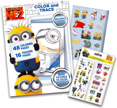 Delight your Despicable Me Minions fan with this Coloring and Activity book with stickers! 96 pages of coloring and activity fun with the Minions.Games, mazes, puzzles and more with Bob, Kevin, Phil and the other Minions. Includes 2 sticker sheets--1 Minions sticker sheet with over 80 stickers, 1 Minions sticker sheet with over 100 stickers! This coloring book and stickers set will provide many hours of Minions fun. Sure to be a hit with any Minions enthusiast!