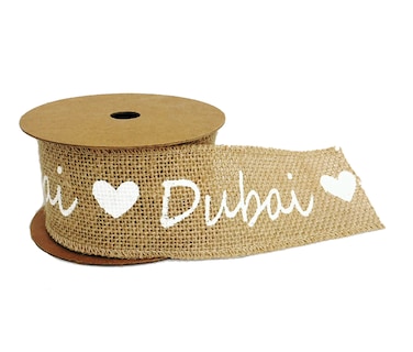 Jute Burlap Ribbon Beige and White with Heart Dubai Print 5M Roll