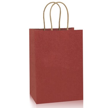 Maroon Paper bags with handles 22 x 16 x 8 cm Small Kraft Gift bags for Birthday Party Favors, Weddings, Restaurant takeouts, Christmas (24 Bags)