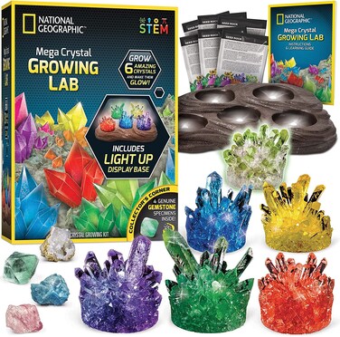 National Geographic Mega Crystal Growing Lab, Grow 6 Vibrant Crystals Fast (3-4 Days), With Light-Up Display Stand, Learning Guide, 4 Genuine Crystal Specimens, An Science Kit