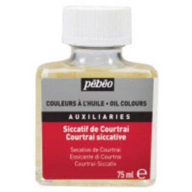 - Pebeo Fast Drying Courtrai Siccative Medium - 75ml Bottle. Courtrai Medium is a very similar product to Liquin. It accelerates drying and allows thick coats to harden evenly. For use with all types of oil paints. This product is very powerful and should be used with care, a drop at a time! It is colourless and will not alter even the lightest colours. Great for use in schools where you need quicker drying!
