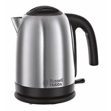 Stylish polished stainless steel Russell Hobbs cordless kettle with black plastic accents. The rapid boil zone indicator allows you to fill just the right amount of water and boils one cup in only 45 seconds. The removable washable lime scale filter will keep your brew tasting amazing and is ideal for those living in hard water areas.Rapid boil zone featureEasy-pour spout360 degree base with integrated cord storageConcealed heating elementRemovable, washable filterInternal water indicator3000WCapacity: 1.7 litres
