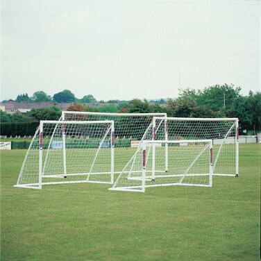 The Samba ® Trainer Multi Goal can be converted into several different goal sizes, making it great value and perfect if you have limited storage space. This versatile kit is ideal for training with different ages and team sizes.Use on all surfaces, whatever the weather.Virtually maintenance free!Light and easy to assemble.Portable and free standing. Fits in an average sized family car.Sturdy and durable with reinforced corners.Includes a set of metal goal anchors, net clips and a tough nylon bag for the goal sections.Which size options that are possible?16 x 7 / 12 x 7 / x 8 x 716 x 6 / 12 x 6 / 8 x 616 x 4 / 12 x 4 / x 8 x 4Please note that only one goal can be made at one time. Not suitable for league use. 1 x 16x7 net included.Safety and Maintenance guidelines: Freestanding goals must be anchored. Always follow assembly instructions and required number of people. Metal cup hooks MUST NOT be used. Check equipment regularly and before every game.INTERNATIONAL CUSTOMERS:WARNING: Exposure to extreme heat may cause this product to expand or warp.We recommend storing in a cool place away from direct sunlight and avoiding use during the hottest part of the day in extreme climates.