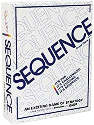 It's fun, it's challenging, it's exciting, it's SEQUENCE! Play a card from your hand, and place a chip on a corresponding space on the game board. When you have five in a row, it's a SEQUENCE. Learn to block your opponents or remove their chips, and watch out for the Jacks - they're wild! With a little strategy and luck, you'll be a winner. Includes 1 Folding Game Board (19.75" x 15.25"), 2 Decks of SEQUENCE Playing Cards (2.25" x 3.5"), 135 playing chips: 35 red, 50 blue and 50 green, and Complete Instructions For 2-12 players, ages 7 and up.