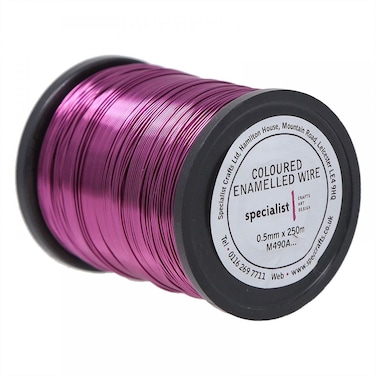 - High quality coloured enamelled wire which is perfect for modelling applications or jewellery making. Available in a range of vibrant colours with a high sheen finish. 0.5mm diameter. 250m reels. Wine.