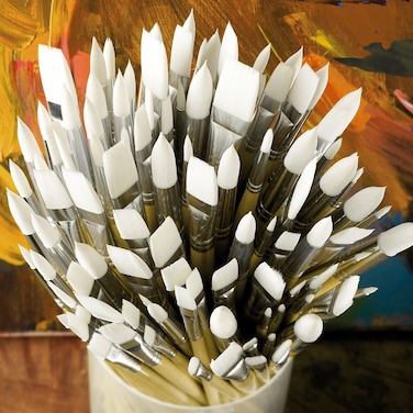 - Long handled round and flat synthetic bristle brushes ideal for use with acrylic, oil, gouache and poster paint. These good quality, low cost brushes are well suited to the artist on a budget, offering more brush for your money! The long, sustainable birch wood handles are coated with a clear lacquer for comfort and protection. The anti-rust ferrules are seamless and tightly fitted to ensure minimal bristle loss. Round brushes are best suited for detail work, filling in small areas and applying controlled washes. Flat brushes are best suited for filling in large areas, creating bold, wide strokes, and blending and mixing colours. An ideal set to ensure you will always have a clean brush to hand! This set of 120 round and flat brushes contains ten each of round sizes 2, 4, 6, 8, 10 and 12, and ten each of flat sizes 2, 4, 6, 8, 10 and 12.