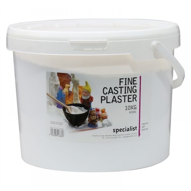 - Quick and easy to use, this fine casting plaster can provide good results. Suitable for all ages, it is one of the most popular modelling materials in schools. Simply mix 100g in 68ml of water and pour into your mould. Once dry it can be sanded, carved or turned and then painted using acrylic paints. This casting plaster dries off-white and has an initial drying time of just 30 minutes. 10kg bucket.