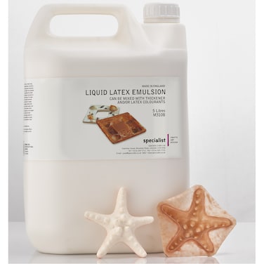 - Perfect for making accurate, long-lasting moulds easily and quickly, Specialist Crafts Liquid Latex Emulsion can also be used for creating models and masks. It can be used on many surfaces including metals, plaster, clay and wood. It is best used on porous surfaces as these draw out the moisture in the Latex causing it to thicken. For non-porous surfaces add Latex Thickener. Use within 6 months and keep out of direct sunlight. 5 litre bottle.