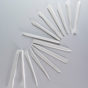 - Economy set of 14 plastic modelling tools suitable for shaping or adding detail to clay and other modelling materials. Made from strong moulded plastic, each tool is approximately 145mm long.