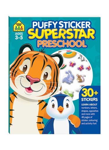 Early learners will be excited and engaged with this awesome School Zone Puffy Sticker Superstar: Preschool 48-page activity book packed full of ‘school ready’ fundamentals to learn specifically for preschool-aged students. Inside, they’ll work though fun educational activities designed to build literacy and numeracy through exercises and game play.