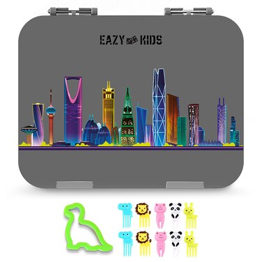 Eazy Kids 4 Compartment Bento Lunch Box w/ Sandwich Cutter Set-Love Saudi Grey