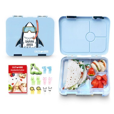 Eazy Kids 4 Compartment Bento Lunch Box w/ Sandwich Cutter Set-Shark Blue