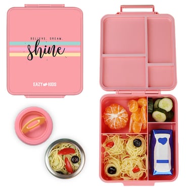 Eazy Kids Jumbo Bento Lunch Box w/t Insulated Jar - Pink