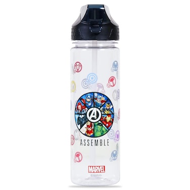 - • BPA and Phthalates Free material which is recyclable, non - toxic, food grade & eco - friendly material, Easy to clean. • The Capacity of Water Bottle is 650ml to keep your Kid full day hydrated, The Sipper Lid is lined with silicon which makes it completely leakproof. • The Water Bottle is Freezer safe( - 18° C) and Dishwasher safe(Without Lid at Top Rack) and Suitable for Warm Water • The Water Bottle comes Clear color with great Prints. Marvel Water Bottle is lightweight to carry to school. • This water Bottles comes with 2in1 drinking, Flip lid and Sipper. • Team them up with Marvel Matching Lunch Box and have a great Back to School!
