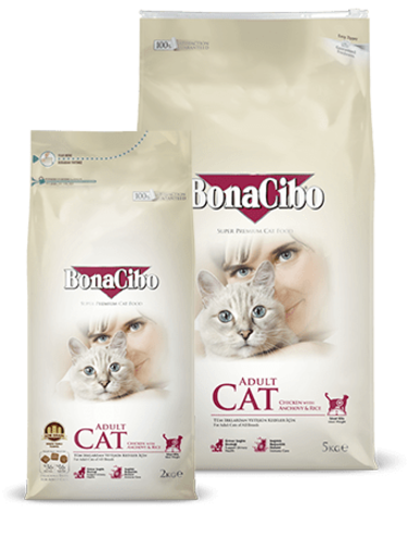 BonaCibo Adult Cat is formulated with the optimum balance of protein, fats and carbohydrates to provide energy and vitality throughout life. Enriched with antioxidant vitamins and plant extracts BonaCibo Adult Cat also maximises health and immunity. For Adult Cats of All Breeds Benefits: - Immuno Care - Support Urinary Health - Ideal Weight Ingredients Dehydrated Chicken Protein (42%), Baldo Rice (16%), Maize, Refined Chicken Oil, Anchovy Meal (6%), Krill Meal, Brewers Dried Yeast, Hydrolized Chicken Liver, Anchovy Oil, Nucleotide Yeast Protein, Minerals, Prebiotic Mannan Oligo Saccarides, Seaweed, Yucca Extract, Cranberry Powder, Psyllium. %36 Protein %16 Fat Content
