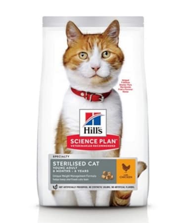 Hill's Science Plan Sterilized Cat Young Adult Chicken is tailored to meet the needs of sterilized cats. Formulated with clinically proven antioxidants and an unique weight management formula.