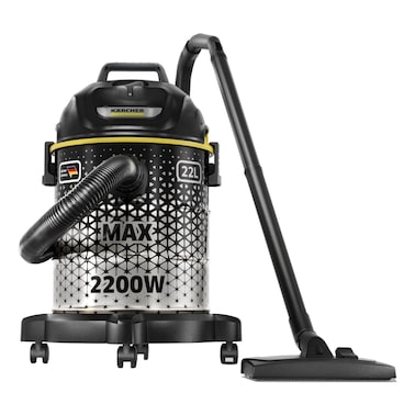 The Karcher Max Dry Bagless Vacuum Cleaner DVAC 2200 is a powerful cleaning tool with a 2200W motor that ensures efficient suction for a thorough clean. Its 22L capacity means you can clean large areas without having to frequently empty the dust bin, making it convenient for big cleaning tasks.