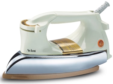 Avion Heavy Weight Dry Iron (AHW21DI) durable material and golden colour non-sticky coating. Its 2.3 kg weight heats quickly and fast & smooth ironing tough jeans and hard linen fabric instantly, comes with Fabric Guide & Pilot Lamp Indicator – The Avion Dry Iron providing the fabric guide for your various cloth collection and select the required cloth type to avoid overheating & damage to your cloth, Avion Dry Iron is designed with shock resistant high durable handle which is very much comfortable while you are using and is heated resistant. This iron box has the thermostat function which will maintain the desired temperature if it cool downs.
