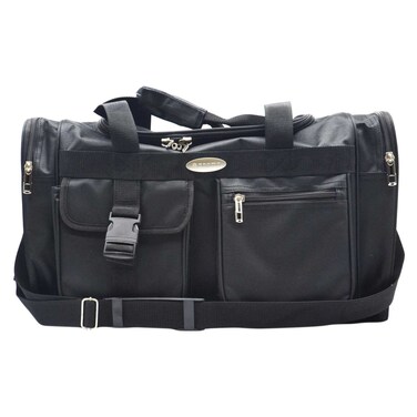 The adjustable shoulder strap and padded handles make it comfortable to carry, while the sleek black design adds a touch of sophistication. Whether you're going on a weekend getaway or a longer trip, this duffle bag has got you covered.