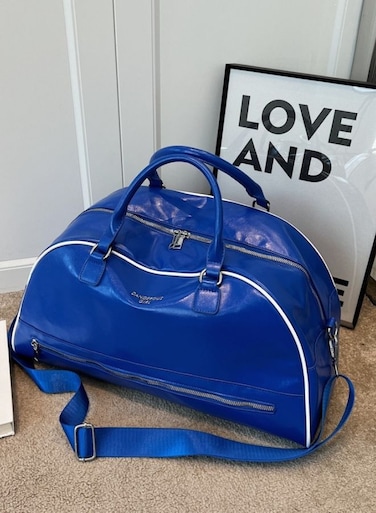Mei Stylish Large Capacity Unisex Sports Gym Travel Duffle Bag with Shoulder Strap, Blue