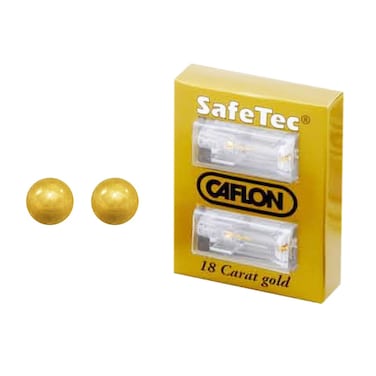 - <li>Safetec – 18ct Gold Ball Sgr18<li>The Caflon Original ear piercing Instrument has been internationally accepted for over 35 years. The spring loaded mechanism is still the most popular method of piercing ears and with a choice of 80+ styles to use you can please the most discerning of clients.<li>Caflon offers surgical quality ear piercing systems specific to the needs of piercing technicians around the world. Each system is made to unique standards for compliance and usability for specific regions.