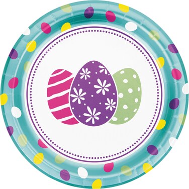 - Creative Converting Foil Stamp Easter Eggs Dinner Plates are heavy-duty plates and durable. Easily be mixed and matched with other unique colours to match your event's theme and decor. Adds a vibrant splash to your dining atmosphere. Perfect for your party, buffet, snack bar or catered event. Handy for special occasions and last minute get-togethers. Sturdy and comfortable to hold. Ensures easy and fast party clean-up. Comes in pack of 8 pieces. Size: 8.75-inch. Measurement: 8.75 inches