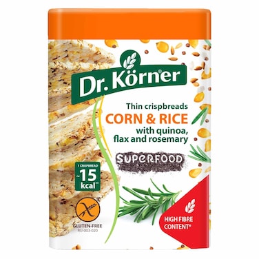 Dr. Korner Corn and Rice Thin Crispbreads with Quinoa Flax and Rosemary Superfood 100g