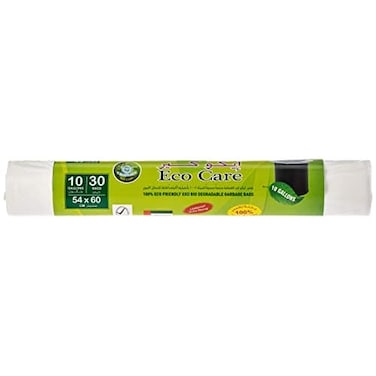Eco Care White Garbage Bag Roll - 30 Count, 10 Gallons, 54X60cm
