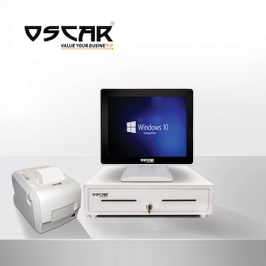 OSCAR Point of Sale POS System J1900 / 4GB RAM / 64 SSD 15" Touchscreen POS Terminal (Shiny White) + Thermal Receipt Printer 80mm + Cash Register Drawer 5Notes 8Coins (Without POS Software)