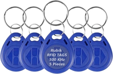 Rubik RFID Tag 500KHz Frequency Readable/Writable Proximity Keyfobs ID-500K Key Ring for Door Access Control (5 Access Keychains)