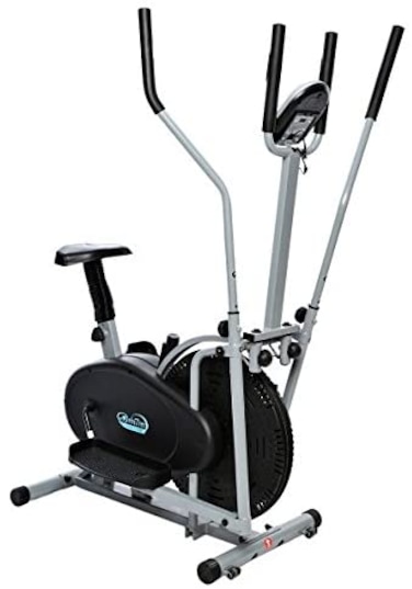 - The Top Sky Orbitrac Elliptical Exercise Bike is perfect for apartments or space limited areas, where space saving is a priority. It will provide a low impact upper and lower body workout using the natural elliptical motion to eliminate any stress on joints and ankles. Then, if you want to switch your workout to an exercise bike, a comfortable large adjustable seat makes the transition very simple. The combination of an elliptical and exercise bike workout will work more and different muscle groups than a singular fitness machine. So increase the value and effectiveness of your fitness machine by using the Top Sky Orbitrac Elliptical Exercise Bike All in One. Product Features: Brand: Top Sky Model: EM-1502 Consists of dual action handle bars with sitting and standing optional workout and combines cycling with rowing action Adjustable resistance level with control knob Scan, speed, distance, time, odometer, calories, hand pulse Slip resistant foot pedals Middle hand pulse sensors Wheels for easy transportation Seat adjustable both sides Gross Weight: 31kgs