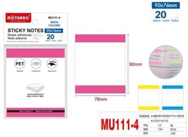 - <p><bi>Brand: Motarro <p><bi>Item Name: STICKY NOTES <p><bi>Model NO: MU111-4 <p><bi>Color:Multicolor <p><bi>Product Dimensions 9 x 9 x 1.5 cm; 220 g