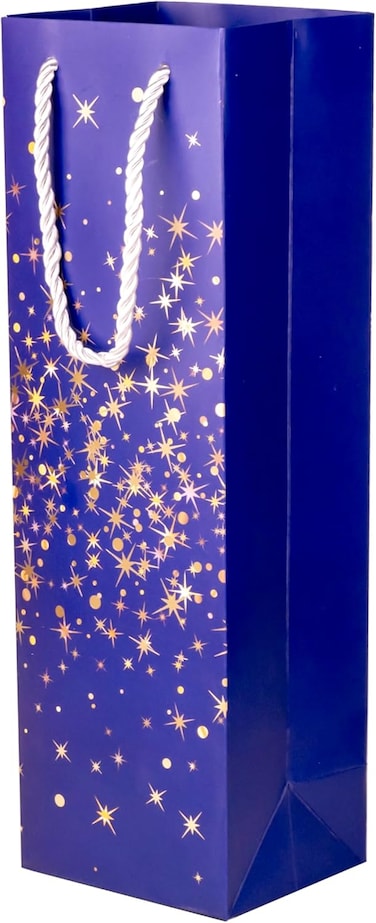 Cuisine Art Wine Bag, 1 pc Wine Gift Paper Bag Single Bottle Wine Gift Bag Red Wine Tote Bag, 5Pcs 4.7 x 3.9 x 14.2’’ Wine Gift Bag Kraft Paper Wine Bag with Handles Blue Gold